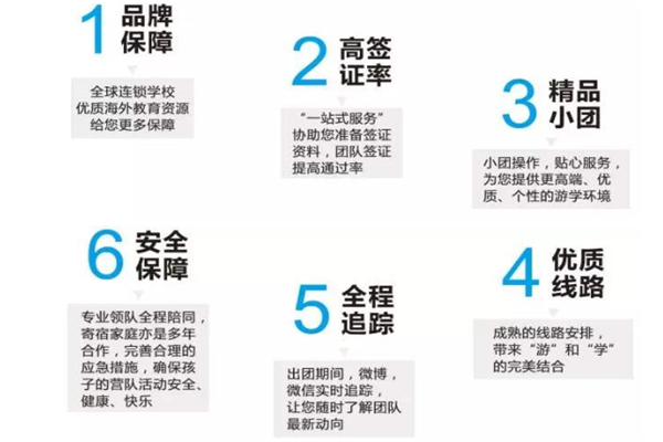 新航道游學秉持著“一切為了學生”的理念,為每一位選擇新航道游學的學生量身策劃適合其自身特色的行程路線,我們的宗旨是:行程可以復制,品質不可超越。高品質的貼心服務,精彩的行程策劃,專屬于您孩子的特色游學路線;最真切的實地感受,最“潮”的度假方式,最受益匪淺的假期;小團模式,專業老師帶隊,面面俱到的全程服務,保障旅游愉悅并收獲累累;看世界風光,開闊視界,為將來的留學提前準備。參觀世界各大名校,樹立遠大人生目標,深入當地家庭,真實體驗多元文化;提升英語學習興趣,增強交際能力,全方位激發學習熱情。