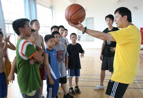 2012年7-8月舉辦“阿迪達斯”杯籃球夏令營,招生人數突破1000人,李指導親子輔導小學員進行訓練。