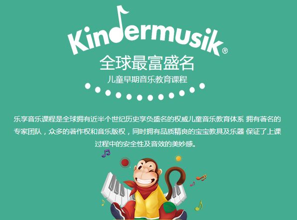秉承著改善今天的孩子,改善明天的世界之理念, 愛樂樂享引進了Kindermusik這一全球知名的兒童早期教育品牌,距今已經(jīng)超過10年。今天的愛樂樂享在中國已經(jīng)有超過150家專業(yè)的早教中心,擁有超過1000位指導師組成的訓練有素的教師團隊以及眾多獲獎的課程。