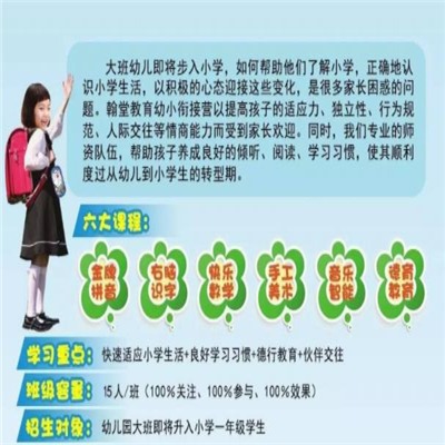 均由桐鄉市在職學科帶頭人、骨干教師和專業的書畫老師進行專業輔導。翰堂教育在鐘校長的帶領下,始終堅持學得快,快樂學的教學理念,以“服務學生”為宗旨,以“創辦品牌”為目標。一切為了學生,為了學生的一切,打造中小學輔導班之名牌。
