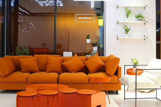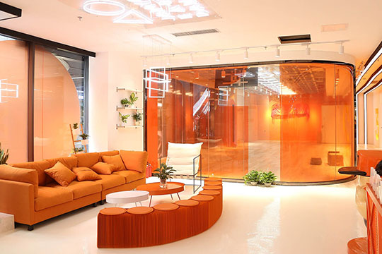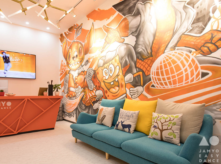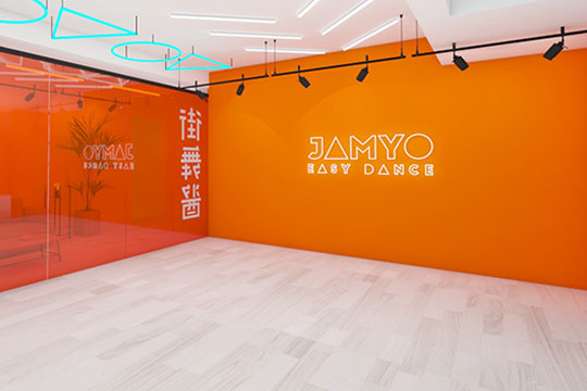 JAMYO街舞醬意指教授推廣專業且有趣的舞蹈,讓更多人愛上街舞。為年輕一代消費者創建一種新的、健康的運動及生活方式。舞蹈室總體風格,燈光設計,地板裝橫,及VI元素都沿用了JAMYO街舞醬主色調“活力橙”進行延申干凈簡潔,高端大氣的整體感覺,使所見之人皆留下了深刻的印象。